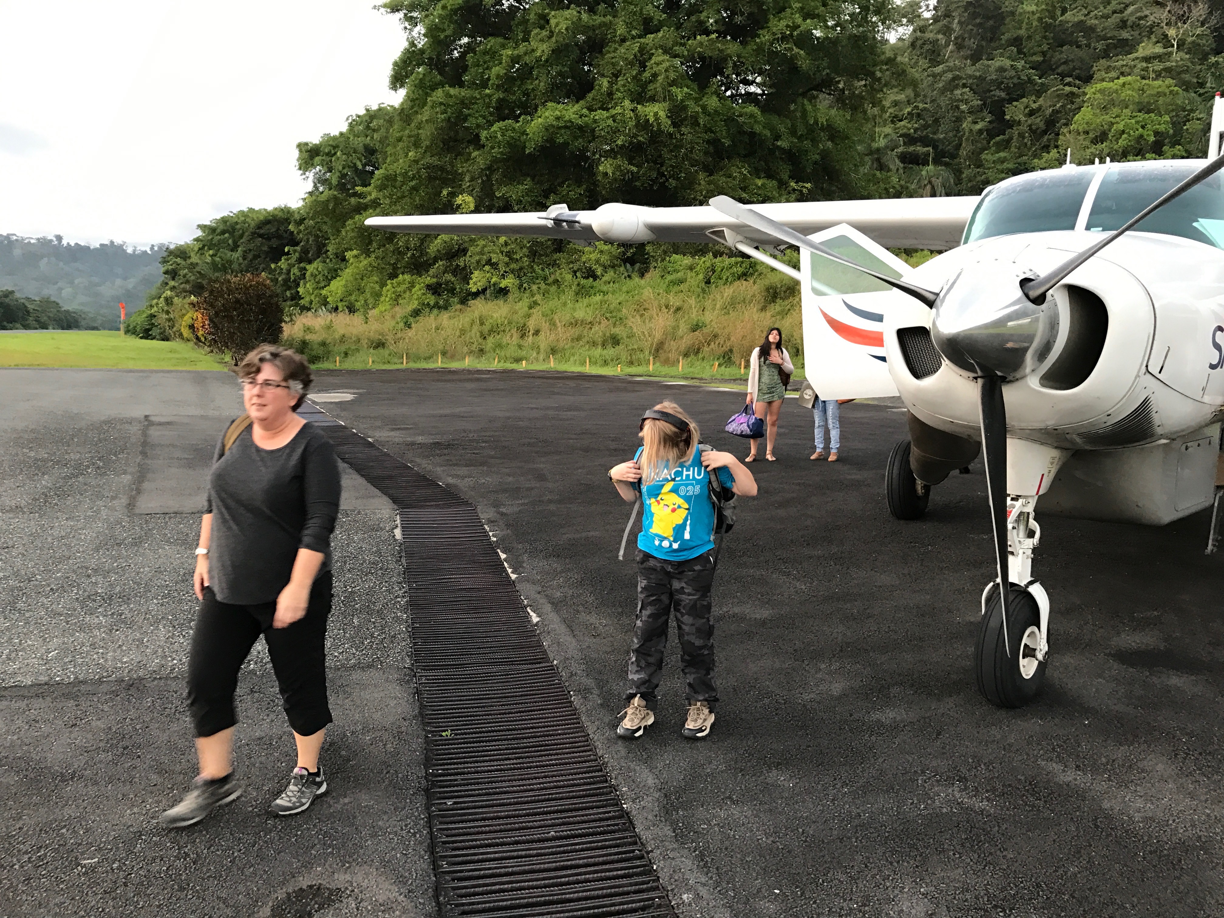 - Heide and Lachlan disembarking at Golfito Airport, Costa Rica