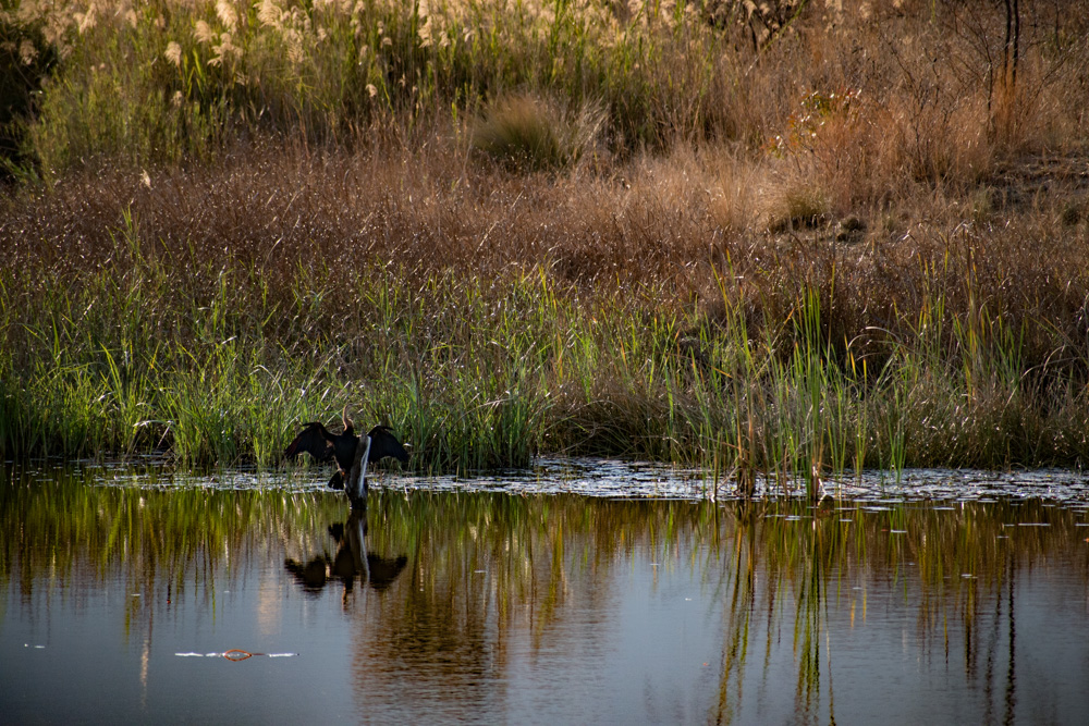 - A cormorant dries its wings as a couple of ducks glide by – Entabeni Safari Conservancy