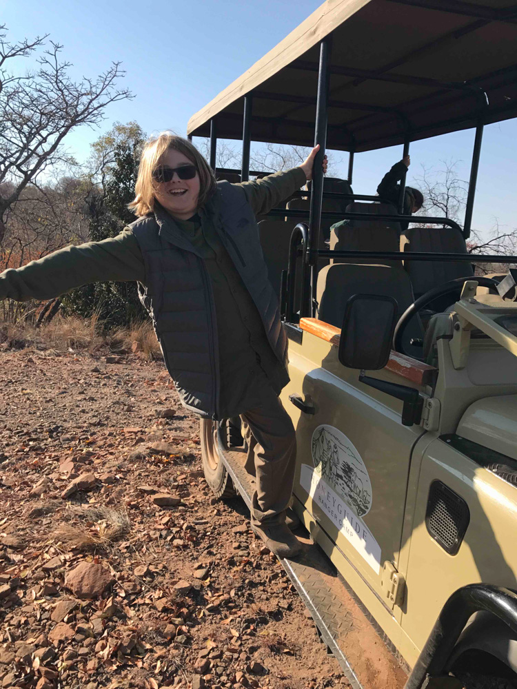 - Lachlan enjoys a break on a morning game drive – Entabeni Safari Conservancy