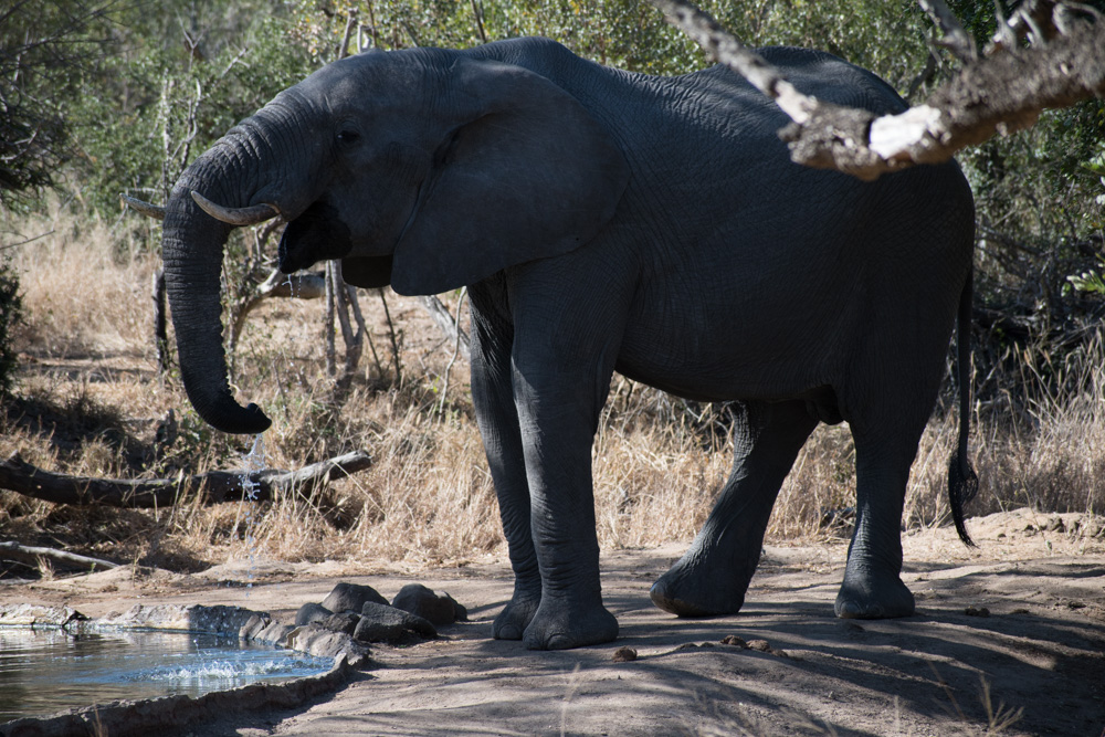 - Elephant at the Khoka Moya Camp waterhole – Manyeleti Game Reserve