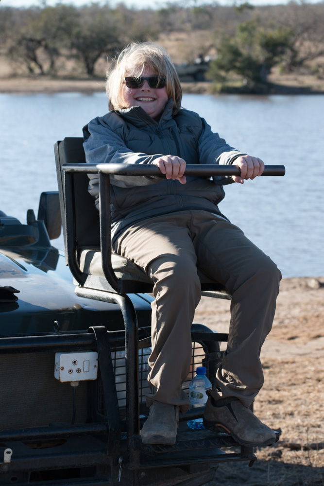 - Lachlan tries out the spotter’s chair – Manyeleti Game Reserve