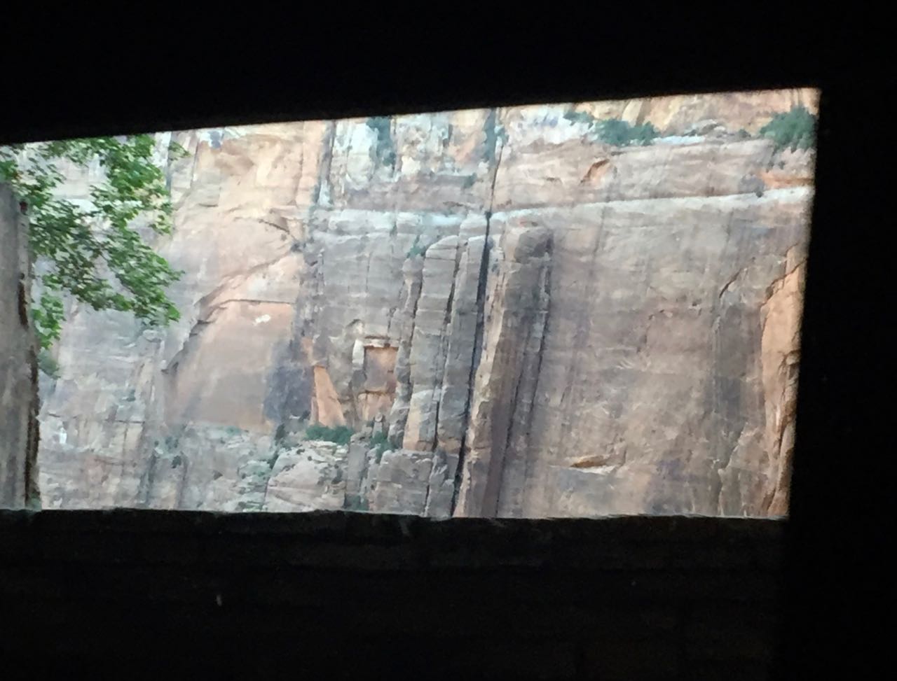 - Looking out of one of the scenic windows cut into the Zion-Mount Carmel Tunnel
